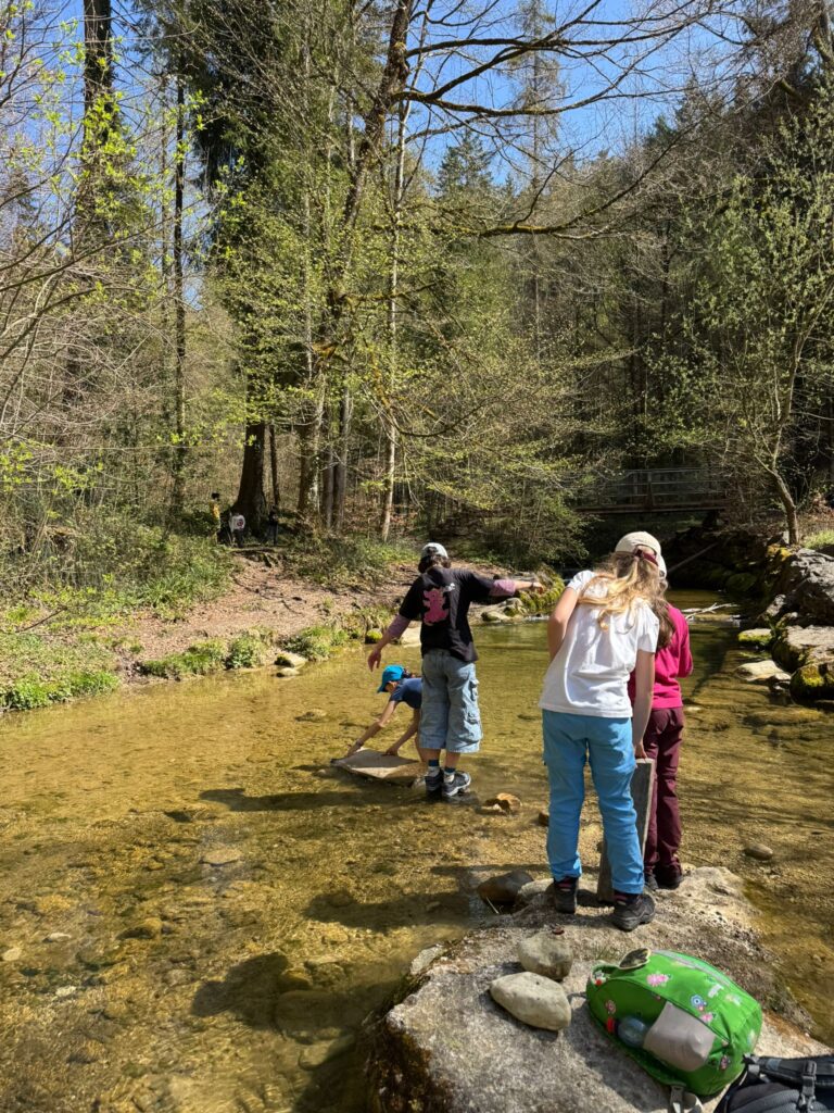 Heute im Progi haben wir die Entwicklung einer Raupe zum Schmetterling erlebt. Zuerst haben wir ein Raupenfangis gespielt und uns danach in einem Blachenschlauch verpuppt. Als wir aus dem Blachenschlauch rauskamen, haben wir uns farbig angemalt und sind schöne Schmetterlinge geworden. Zwischendurch haben wir noch gemeinsam eine Steinbrücke gebaut und hatten Spass, diese zu überqueren.