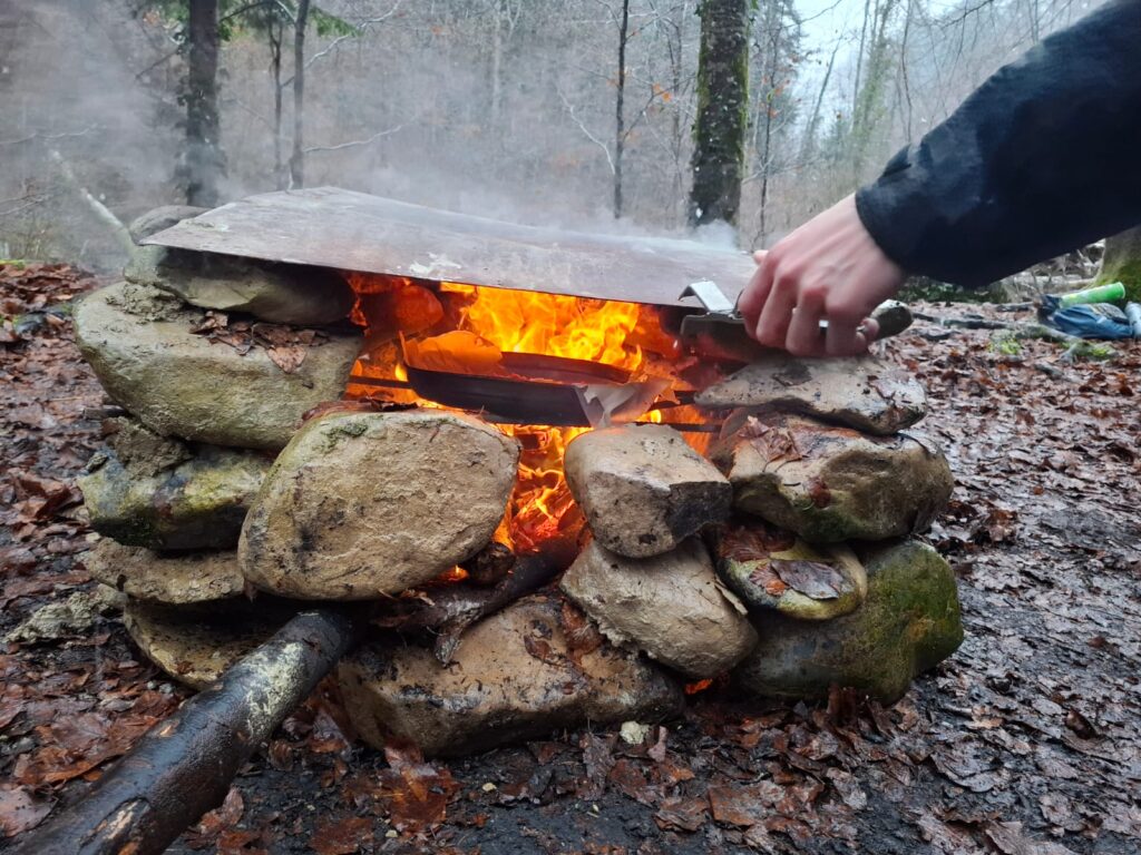Flammkuchen backen kann jeder – aber mitten im Wald? Im Progi bauten wir aus Steinen und Lehm unseren eigenen Ofen. Das Experiment glückte: Der Ofen feuerte perfekt, und zum Zvieri genossen wir frisch gebackenen, herrlich knusprigen Flammkuchen.»